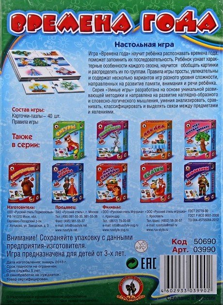Купить Умные игры Времена года в Новосибирске Вы можете в магазине развивающих и настольных игр "Игры Почемучек"