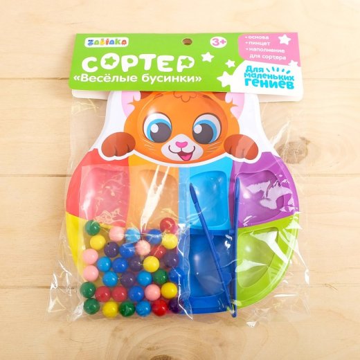 Сортер Zabiaka "Веселые бусинки" - игра создана для тренировки мелкой моторики, обучению цветам и счёту. Малыш сначала пальчиками, а потом с помощью пинцета будет раскладывать "конфетки" по отделениям. Процесс можно усложнять, добавляя новые задания.