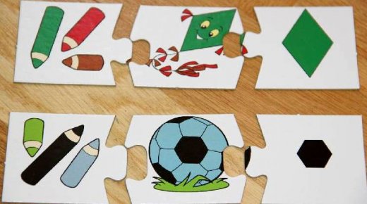 Развивающая игра Цвета и формы – это весьма увлекательное и познавательное занятие для ребенка. Эта игра предполагает участие нескольких детей и ведущего-взрослого. Но дети постарше, усвоив простые правила, смогут играть и самостоятельно. Настольная игра "Цвета и формы" совмещает в себе, возможности игры головоломки и учебного пособия, составленного на основе современных методических программ дошкольного воспитания. Игра способствует обучению ребенка основным цветам и их оттенкам, основным формам, а также таким важным понятиям как большой или маленький (больше, меньше). Игра состоит из картонных карточек, каждая из которых разделена на 3 элемента. На первом изображены карандаши трех цветов, на втором - изображение, включающее три цвета карандашей, а также одну форму, являющуюся частью рисунка, на третьем - сама форма, имеющая тот же цвет, что и на рисунке.