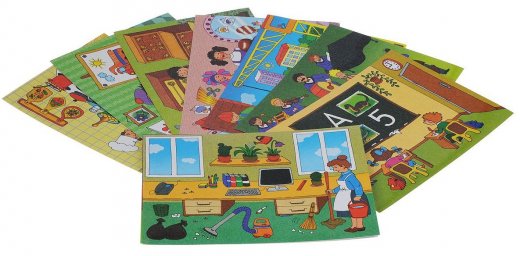 Комплект содержит 12 красочных карточек и книжку со стихами. Заниматься с набором совсем несложно. Для этого не нужно быть профессиональным педагогом, с задачей справится абсолютно любой взрослый. В книжке каждое упражнение подробно описано и проиллюстрировано. Малышей ждет встреча со столяром Семеном, фермером Вовой, доктором Лолой, учительницей Олей, поваром Васей, уборщицей Карлоттой и многими другими людьми, чей труд достоин уважения и необходим каждому из нас. Дети узнают, какие инструменты и приспособления характерны для каждой из профессий и даже смогут попробовать изобразить работу с этими инструментами при помощи своих маленьких пальчиков, а веселые стихи и потешки помогут им быстро разучить все нужные движения.