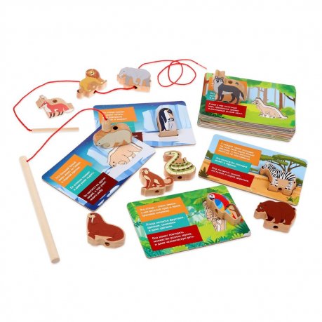 Комплектация: карточки 16 шт., фигурки 16 шт., удочка, шнурок.