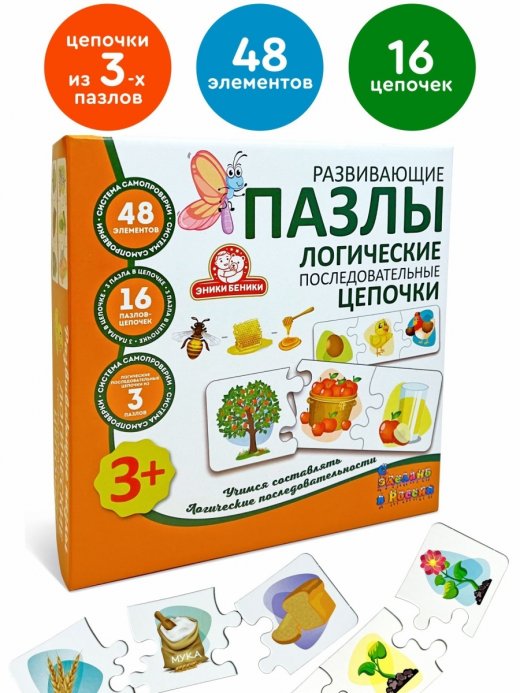 Купить Развивающие пазлы Логические последовательные цепочки в Новосибирске Вы можете в магазине развивающих и настольных игр "Игры Почемучек".