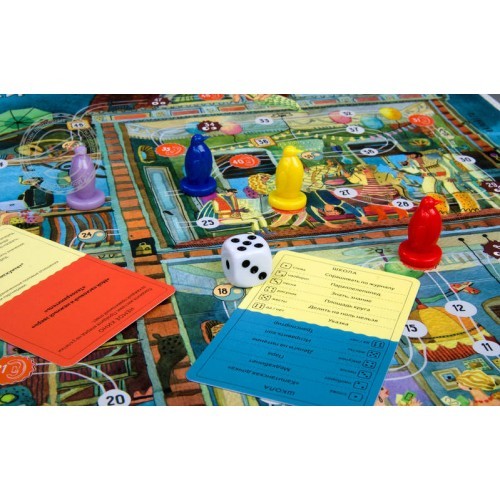 Кидайте кубик, выполняйте задания и в случае успеха продвигайтесь вперед по игровому полю.