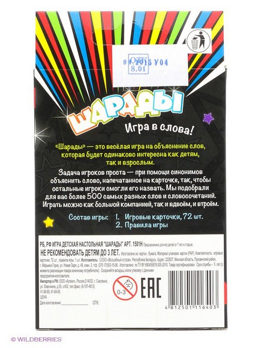 Оставить свой отзыв о настольной игре Шарады (понравилось/не понравилось и почему) Вы можете чуть ниже в разделе Отзывы