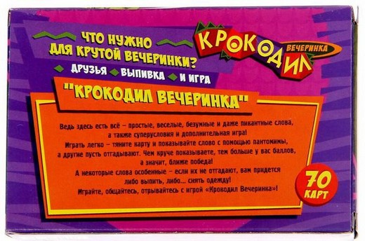 Возьмите «Крокодила» с собой на встречу с друзьями, корпоратив или вечеринку, ведь он создан специально для тех, кто хочет оторваться!
