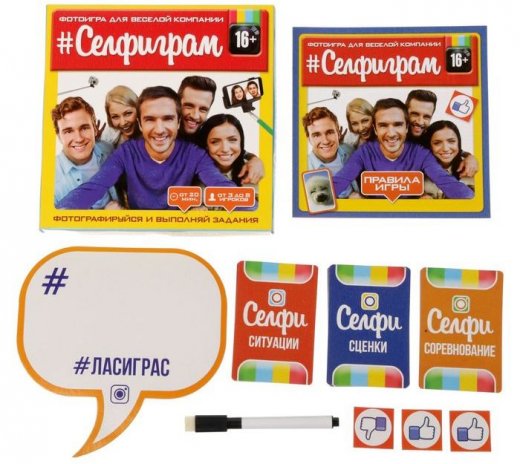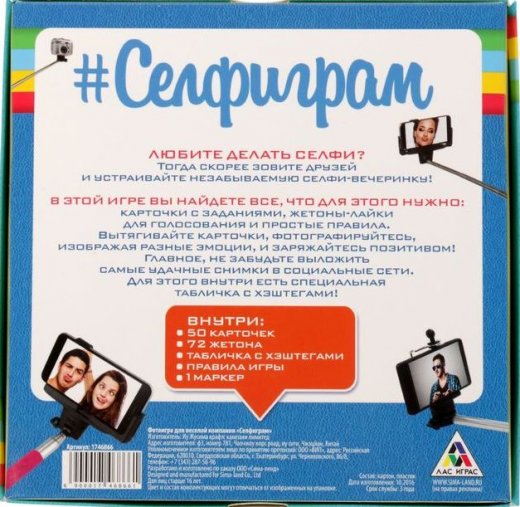 Вы любите делать селфи? Тогда скорее зовите друзей и устраивайте незабываемую вечеринку! В игре вы найдёте всё, что для этого нужно: карточки с умопомрачительными заданиями, жетоны-лайки, простые правила и настоящую табличку с хэштегом, с которой сможете сделать незабываемые фотографии.