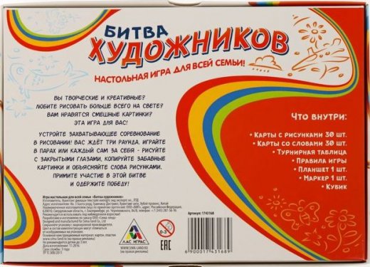 Если вы хотите порадовать себя или близких, создать праздничное настроение и с улыбкой провести памятный день, то вы, несомненно, сделали правильный выбор! Игра настольная для всей семьи "Битва художников" отличается не только оригинальным дизайном, но и высоким качеством.