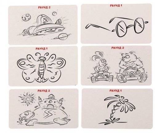 Вы творческие и креативные? Любите рисовать больше всего на свете? Вам нравятся смешные картинки? Эта игра для Вас! Устройте захватывающее соревнование в рисовании! Вас ждет три раунда, играйте в парах или каждый сам за себя – рисуйте с закрытыми глазами, копируйте забавные картинки и объясняйте слова рисунками. Но следите, чтобы загаданное получались не слишком очевидными – другие игроки должны догадаться, но не должны сделать это очень быстро. За отгаданное слово предоставляется очко. Победит тот, у кого к концу игры очков будет больше. Примите участие в этой битве и одержите победу!
