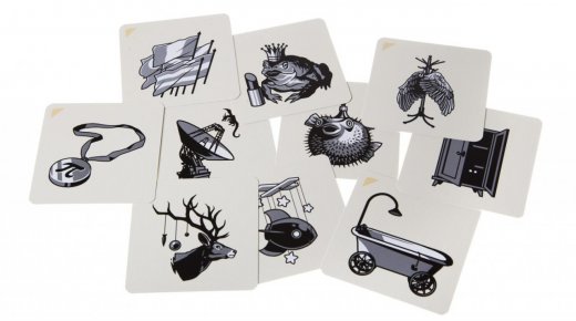 Комплект: карточки, подставка для карт, песочные часы, правила игры.