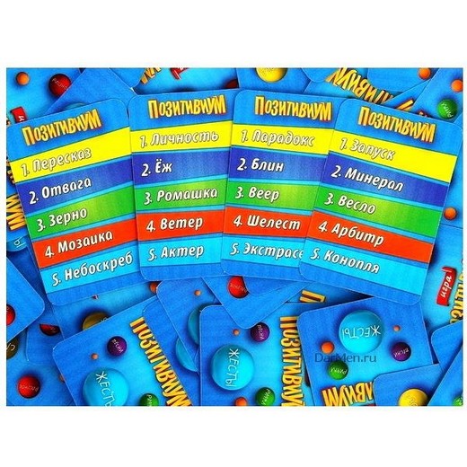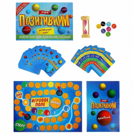 Позитивиум удивительная настольная игра. Во-первых она проста в понимании правил, ее не придется долго объяснять и изучать, Вы и Ваша компания сможете сразу окунуться в яркий и позитивный игровой мир, а во-вторых она на столько разносторонняя, что каждый найдет себе дело по душе. Это активная и озорная игра, которая захватит Вас полностью и Вы уже не захотите от нее оторваться! И помните, чем больше народу, тем веселее!