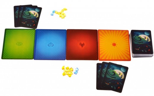 1. Положите четыре алтаря в ряд между колдунами. На них вы будете играть карты такого же цвета.