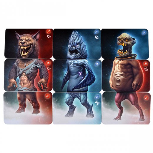 В настольной игре "Кошмариум" расширенной версии вам также придется собирать разных чудовищ из красочных карт с разными частями тела. Но теперь монстры стали еще сильнее и крепче, т.к. у них появились печати для защиты от нападок других игроков. Чудовища с печатью бессмертны, их никто не сможет победить.