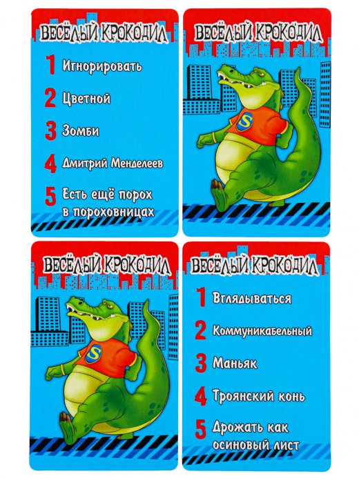 "Крокодил" это словесная игра для веселой компании. Суть игры в том, чтобы объяснять слова написанные на карточках ограниченным набором способов.