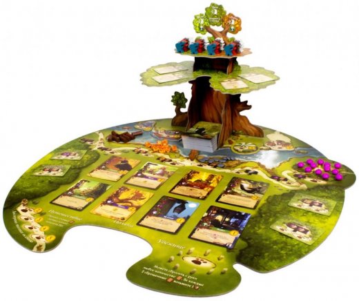 "Эверделл" – это волшебная настольная игра для 1-4 игроков (c "Фестивалем" – для 1-6) и само воплощение тепла и уюта. Действие игры происходит в сказочном мире, где животные разговаривают и дружно живут вместе в лесных городах. Прежде всего, игра удивит Вас своим очаровательным дизайном игрового поля и компонентов, в которых используются мягкие и приятные цвета. Во главе игрового поля стоит настоящее дерево, которое нужно будет собрать по инструкции из картонных элементов. Дерево не просто выполняет декоративную функцию – на его ветвях располагаются карты и фигурки.