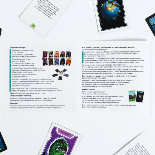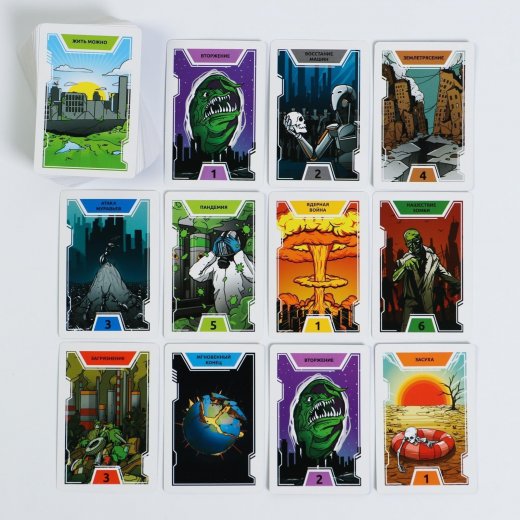 Конец игры: Игра завершается, когда на столе будут выложены все 10 типов карт катастроф всех 7 уровней. Побеждает игрок, набравший наибольшее количество очков.