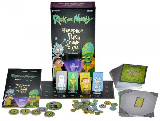 А что касается настолки "Рик и Морти: Наверное, Рики сошли с ума", то мы попадаем прямиком в микровселенную, созданную Риком для зарядки аккумулятора его космического корабля. Аккумулятор неожиданно сдох и дед с внуком отправляются прямо внутрь него, чтобы разобраться в чем дело.