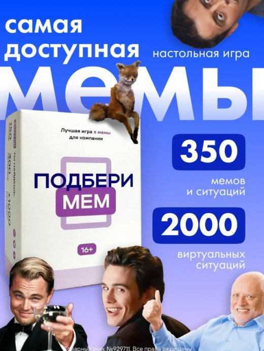 Настольная игра Подбери мем с мемами подарит много смеха и веселья вам, вашим друзьям и близким. Ролевые семейные игры по типу угадай какой ты уже давно стали классикой на все времена и очень популярны среди родителей и детей. Поэтому если вы не знаете, как провести вечер выходного, то самая смешная настольная игра станет отличным досугом для всех возрастов. Игра мемограм состоит из игральных карточек, в ней простые и понятные правила.
