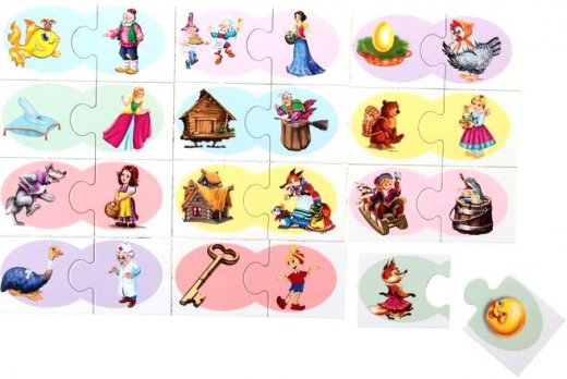Развивающая игра Ассоциации Угадай сказку – это замечательная игра, которая поможет развить у ребёнка умение анализировать, сопоставлять, выстраивать ассоциативный ряд. Цель игры - составить пары из предметов, относящихся друг к другу по характерным признакам. Подсказками при составлении пар могут служить цвет подложек под рисунками и их форма. Карточки соединяются между собой по принципу пазла, поэтому ребенок легко поймет если пытается соеденить неправильные половинки – замки в таком случае не соединяться.