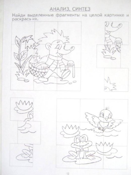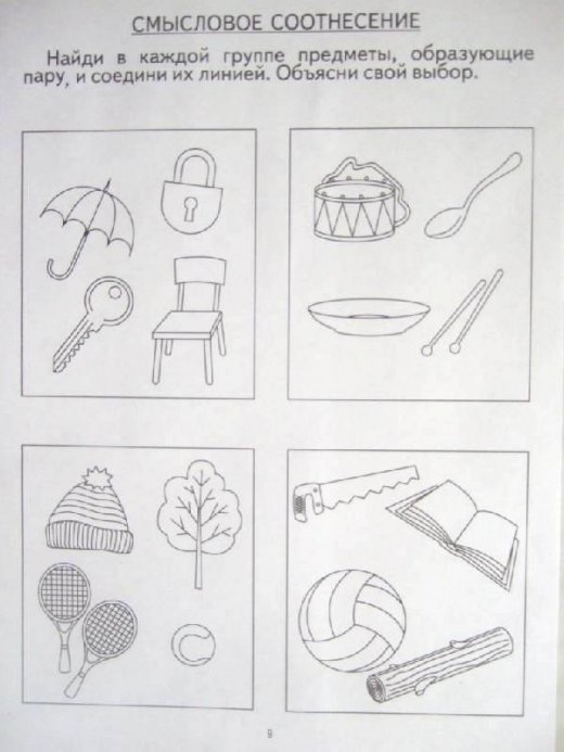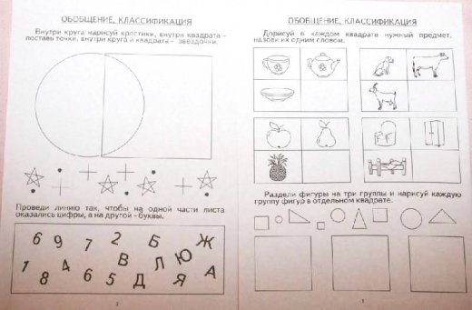 В папке: 16 листов с заданиями и нераскрашенными картинками + 2 цветных вкладыша, которые необходимо разрезать по пунктирным линиям. В папку включены задания по разделам: обобщение, классификация; сравнение; аналогии; систематизация; смысловое соотнесение; отрицание; анализ, синтез; умозаключения; логические задачи.