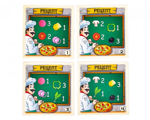 4. Готовим по рецепту. Предложите ребенку приготовить пиццу, выкладывая нужное количество продуктов в соответствии с рецептом на карточке.