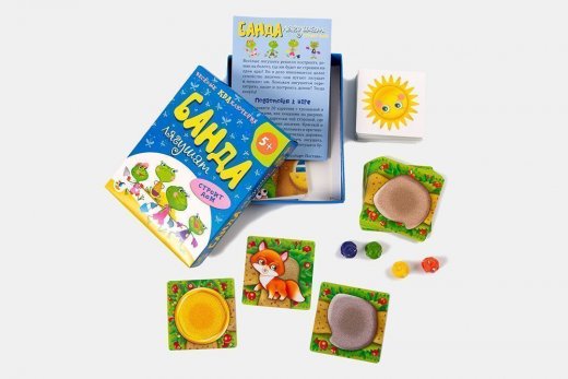 Комплектация: 70 карточек из картона, 4 пластмассовые фигурки лягушат, правила.