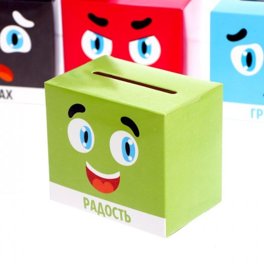 Играть с набором просто: читайте задание на карточке и отправляйте её в соответствующую копилку эмоций. Можно выполнять такие задания на скорость. Посоревнуйтесь друг с другом на время!