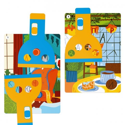 Задача ребёнка — найти в очертаниях предметов образы букв, которые соединяются в слова. Сделать это можно с помощью специальных фонариков с вырубкой в форме геометрических фигур.