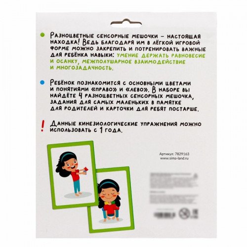 Размер упаковки: 19 см × 5 см × 23 см Купить Развивающий набор «Сенсорные мешочки» в Новосибирске Вы можете в магазине настольных и развивающих игр "Игры Почемучек"