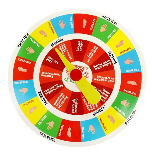 Первый играющий крутит стрелку на поле, она укажет вам какую часть тела нужно поставить в кольцо определенного цвета. Т.е вы сразу увидите, какую ногу или какую руку вам следует поставить в кольцо. После того как первый участник занял свою позицию, ход переходит к следующему игроку, и так по часовой стрелке. Таким образом все участники оказываются на одном игровом поле из колец, находясь в тесной связи друг с другом.