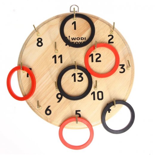 Игра «Меткие кольца» подходит для людей всех возрастов — от 3 до 99 лет. Играть могут от 2 до 6 игроков.Игра похожа на классический дартс, только вместо острых дротиков нужно бросать кольца.