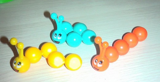 - 3 разноцветных червячка (оранжевый, синий, желтый)