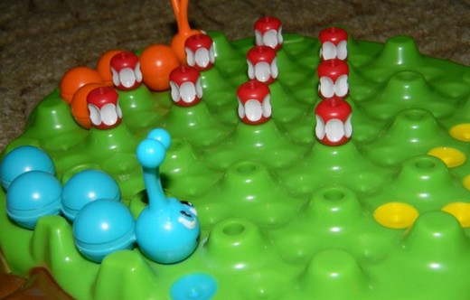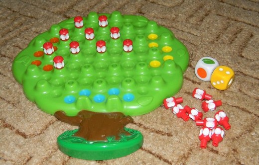 игровом поле расставляется 19 яблочек, затем выставляются цветные червячки, для