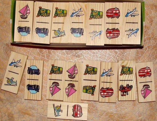 Домино Транспорт дерево – это весьма интересное и увлекательное занятие для ребенка. Вместо привычной для всех настольной игры «Домино», в данном домино вместо точек вы увидите изображения различных видов транспорта. Такие красочные изображения привлекают внимания и помогают легче ребенку вникнуть в правила игры. Правила игры просты и понятны. В свой ход, каждый игрок должен добавить в цепочку из карточек одну их своих так, чтобы изображение на ней подошло к изображению на конце цепи. Если в руках у игрока нет подходящей карточки - он берет дополнительные из "базара", до тех пор, пока не попадется нужная. Выигрывает тот, кто первым выложит все свои карточки.