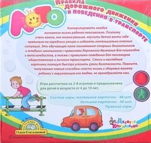 Детское лото может быть не только увлекательной игрой, но и помощником в обучении: данное лото дает детям возможность познакомиться с правилами дорожного движения и узнать, как следует вести себя в общественном транспорте, на остановках автобусов, в метро. Игра при помощи наглядных картинок и стишков расскажет как положено переходить автомобильную дорогу или пересекать железнодорожные пути, как вести себя во время посадки и высадки пассажиров из поездов метро, электричек и других транспортных средств. Играя, дети узнают, что обозначают сигналы светофора, как правильно вести себя на остановке автобуса, на платформе и эскалаторе в метро, при посадке и высадке пассажиров и многое другое. Стихи и наглядные картинки помогут быстро усвоить уроки безопасности. Помните, полученные знания способны спасти жизнь и здоровье вашему ребенку и окружающим его людям, не пренебрегайте ими.