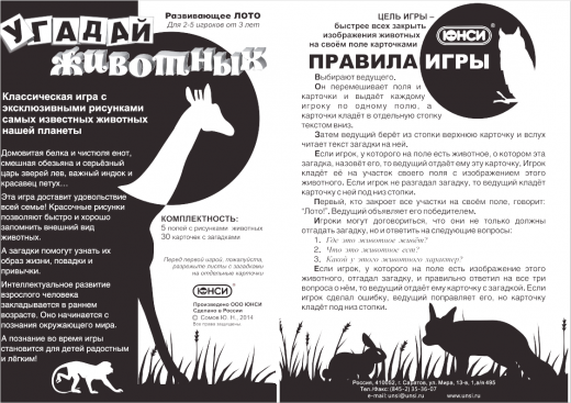 Купить Развивающее лото угадай животных в Новосибирске Вы можете в магазине развивающих и настольных игр "Игры Почемучек"