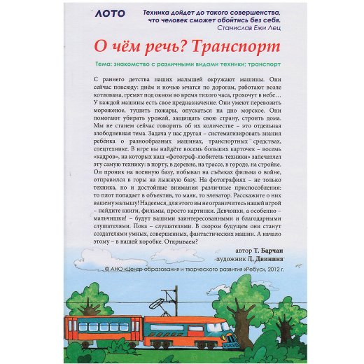 Купить лото "О чем речь? Транспорт" в Новосибирске Вы можете в магазине развивающих и настольных игр "Игры Почемучек".