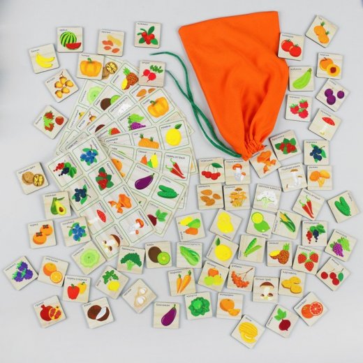 Ведущий раздает карточки лото каждому игроку. Далее он берет по одной фишке и называет вслух то, что на ней изображено. Если изображение на карточке одного из игроков совпадает с изображением на карточке ведущего, то игрок накрывает ею соответствующую область в карточке лото. Первый, у кого закроются все рисунки на карточке лото, становится победителем.