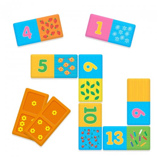 Цель игры - соотнести цифру с верным количеством предметов, соблюдая правила игры классического домино.