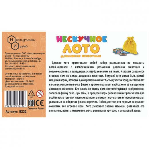 Купить нескучное лото "Домашние животные" в Новосибирске Вы можете в магазине развивающих и настольных игр "Игры Почемучек".