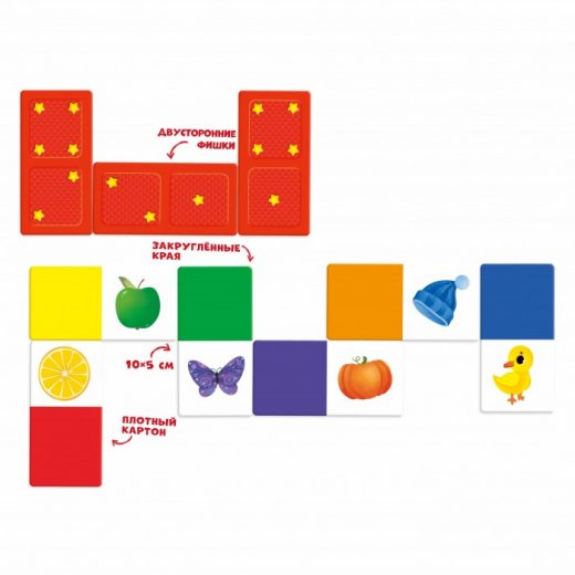 Детское домино "Цвета" расширяет кругозор малыша, развивает его память, внимательность, быстроту реакции и логическое мышление.