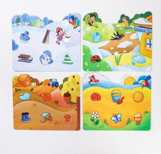 Это увлекательная игра, благодаря которой дети познакомятся с временами года и узнают, чем они отличаются друг от друга. Берите игровые поля, вытягивайте жетоны и раскладывайте их по ячейкам. Победит тот, кто быстрее всех заполнит свою карточку.