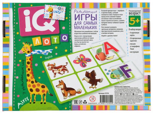 Купить IQ Лото Английская азбука в Новосибирске Вы можете в магазине настольных и развивающих игр "Игры Почемучек"