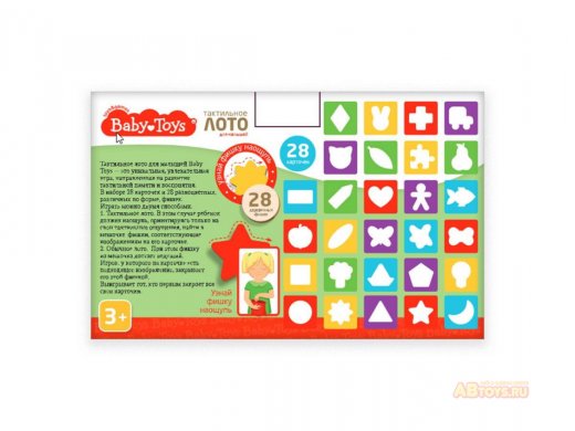 Купить Тактильное лото для малышей Baby Toys 28 карточек 28 фишек в Новосибирске Вы можете в магазине настольных и развивающих игр "Игры Почемучек"
