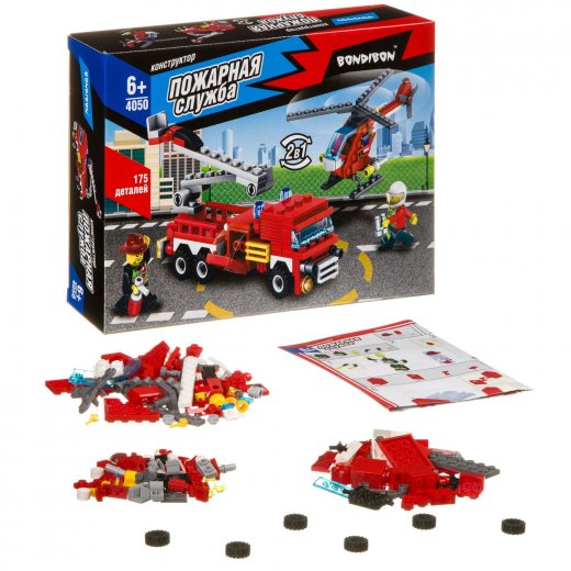 Купить Конструктор Bondibon Пожарная Служба Вертолет Машина 175 дет в Новосибирске Вы можете в магазине развивающих и настольных игр "Игры Почемучек".