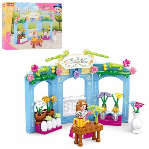 Конструктор Загородная жизнь:Цветочный магазин. Сюжетный блочный конструктор из 152 деталей-кирпичиков.