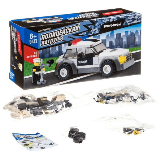 Купить Конструктор Bondibon Полицейский Патруль Машина 69 дет в Новосибирске Вы можете в магазине развивающих и настольных игр "Игры Почемучек".