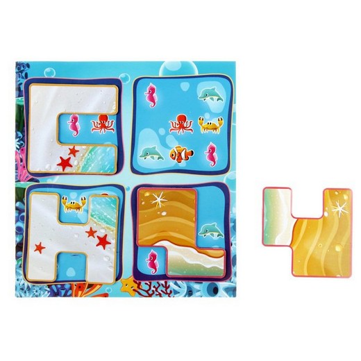 Игровое поле – магнитная доска. У Вас есть четыре детали разной формы. Задача – расположить их на поле так, чтобы остались только морские жители, изображенные на карточке. Попробуйте решить головоломку!