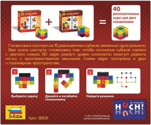 Головоломка состоит из пластмассовых кубиков, нанизанных на резинку. Задача игрока изучить схему в инструкции и изогнуть головоломку так, чтобы положение кубиков совпало со схемой.