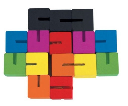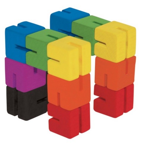 Изогнуть головоломку так, чтобы положение цветных кубиков совпало со схемой-задачей.
