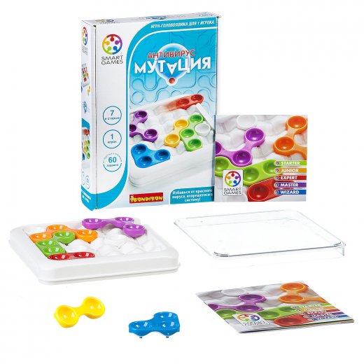Логическая игра Антивирус Мутация развивает пространственное и логическое мышление, усидчивость, аналитическое мышление, абстрактное мышление, внимание, а также способствует совершенствованию мелкой моторики рук.